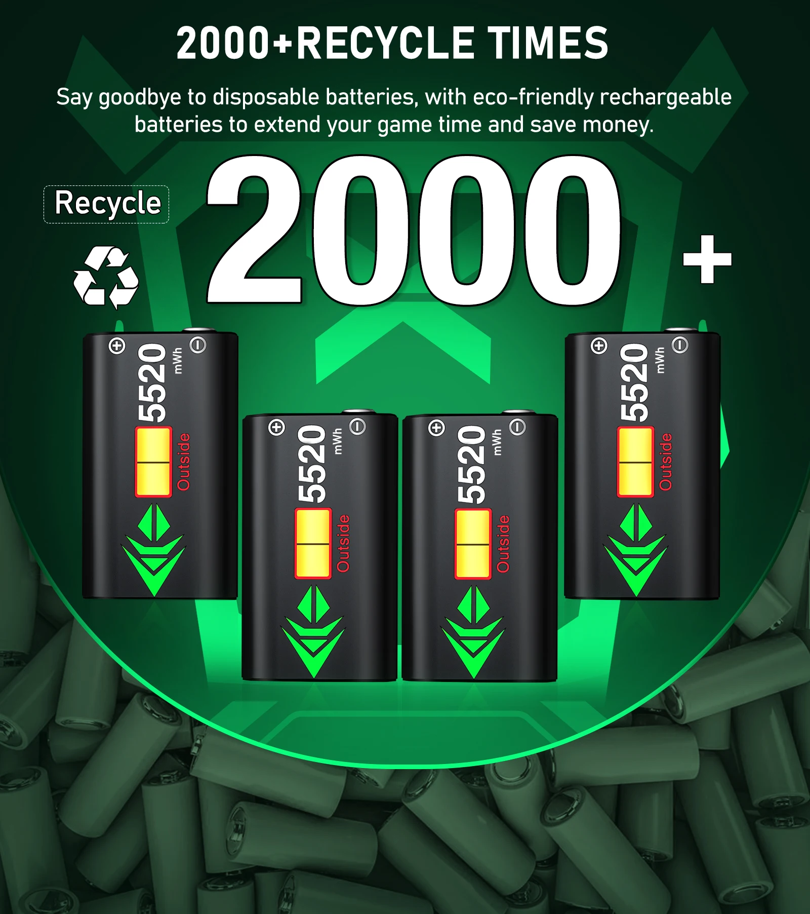 • 【Why Choose Us】 Say goodbye to the disposable batteries, our single battery can be repeatedly charged up to 3000 times, providing a sustainable and cost-effective solution to your gaming needs.
