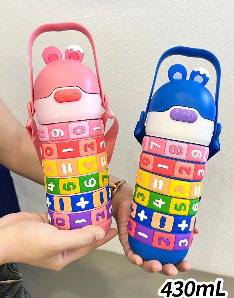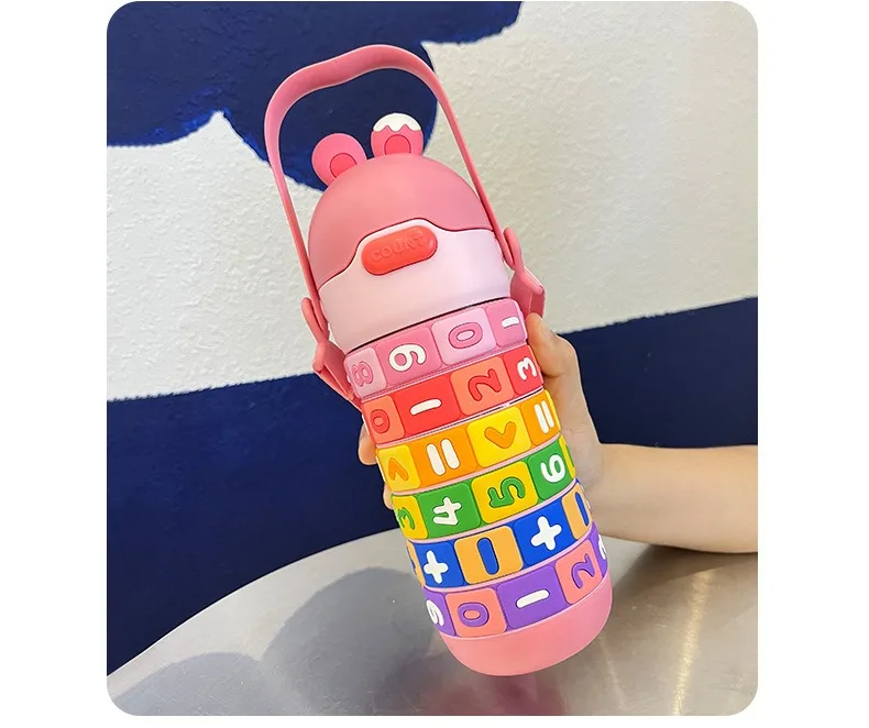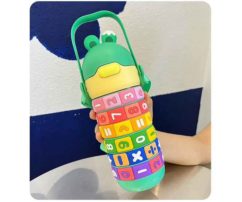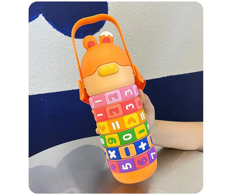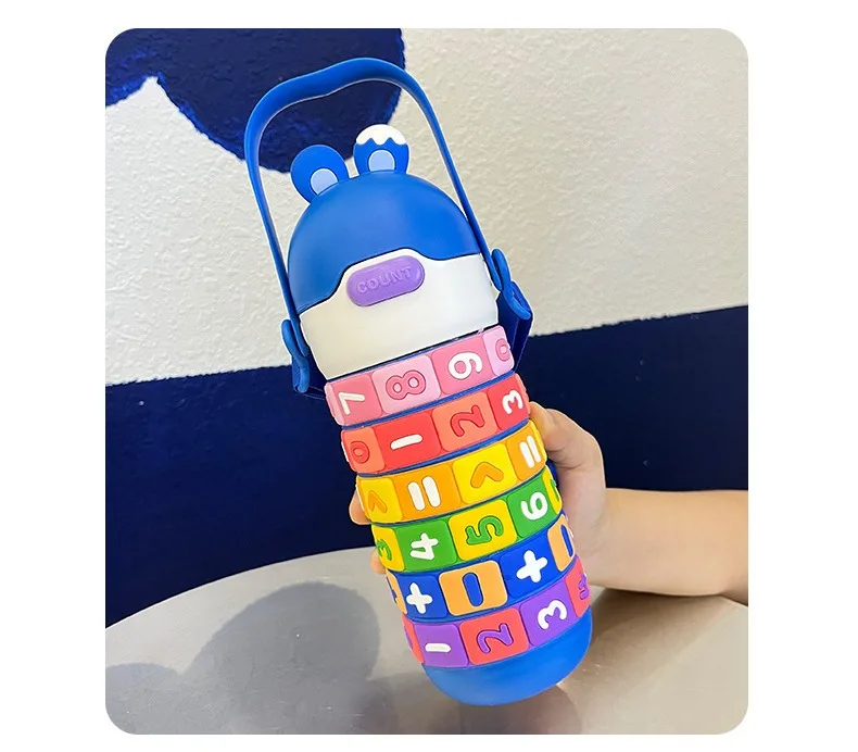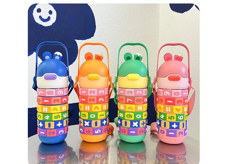 Bottle Digital Puzzle Insulated Water Bottle Anti-Drop Portable Cartoon Straw Cup For Kindergarten Student