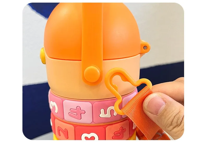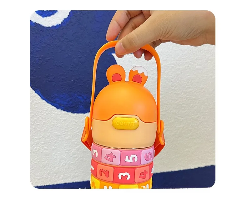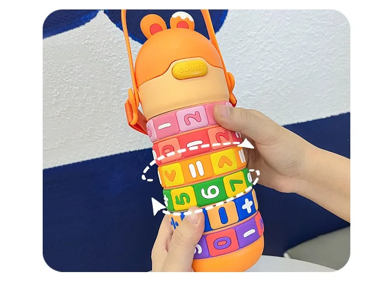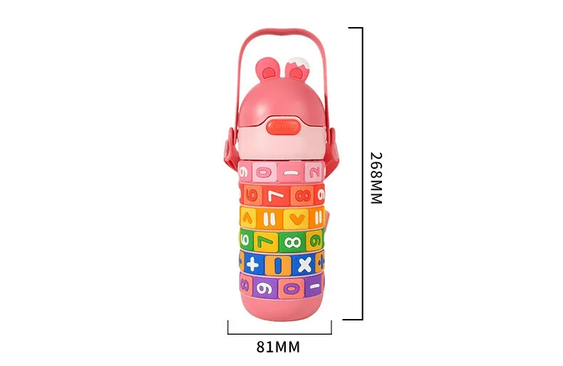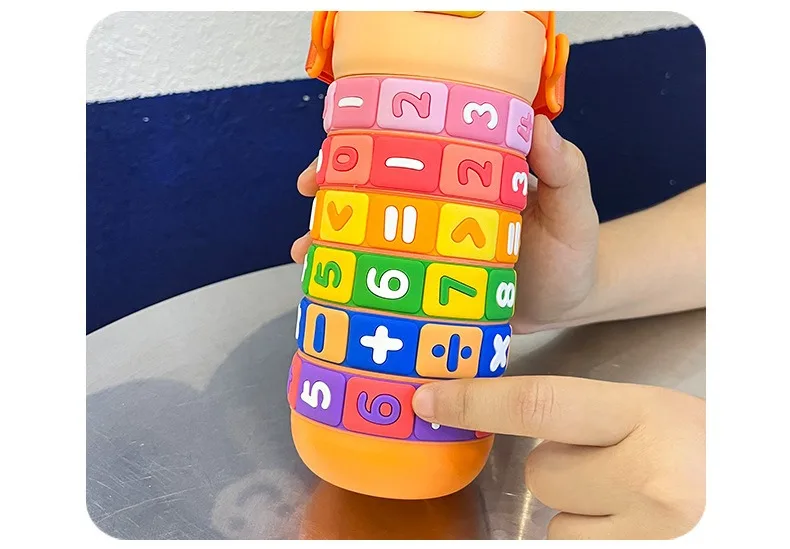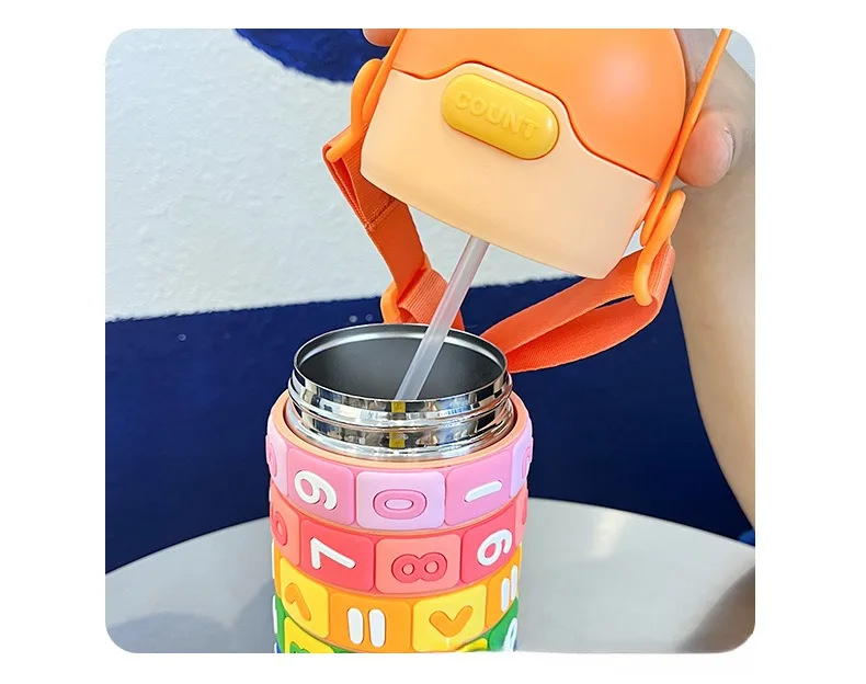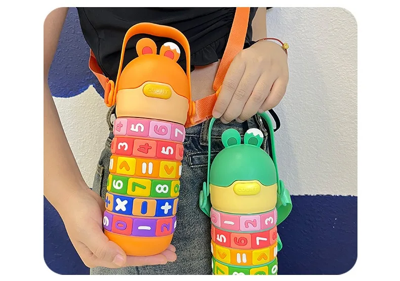 Bottle Digital Puzzle Insulated Water Bottle Anti-Drop Portable Cartoon Straw Cup For Kindergarten Student